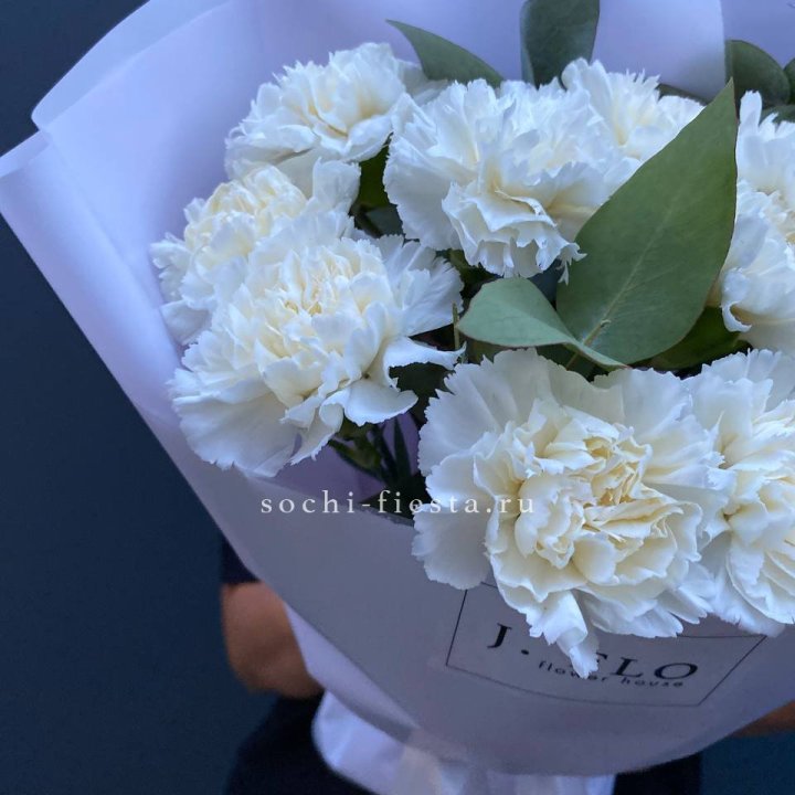 Белые Диантусы с эвкалиптом