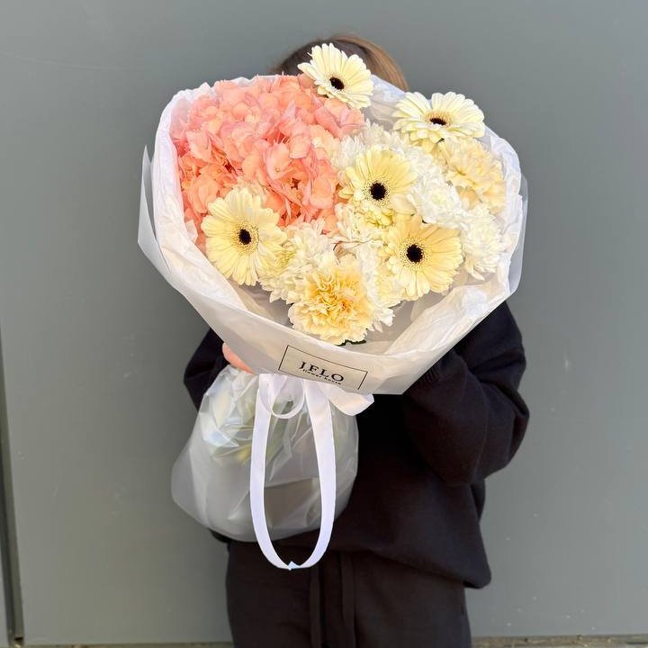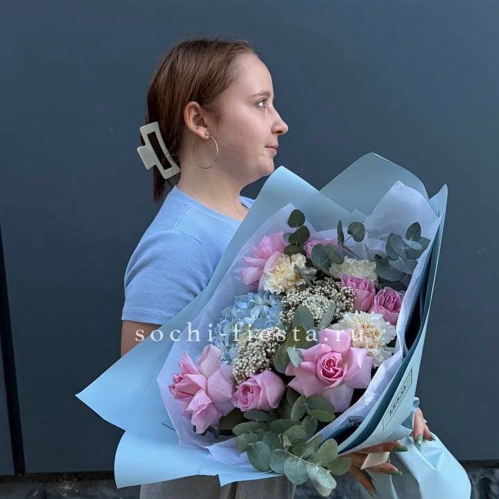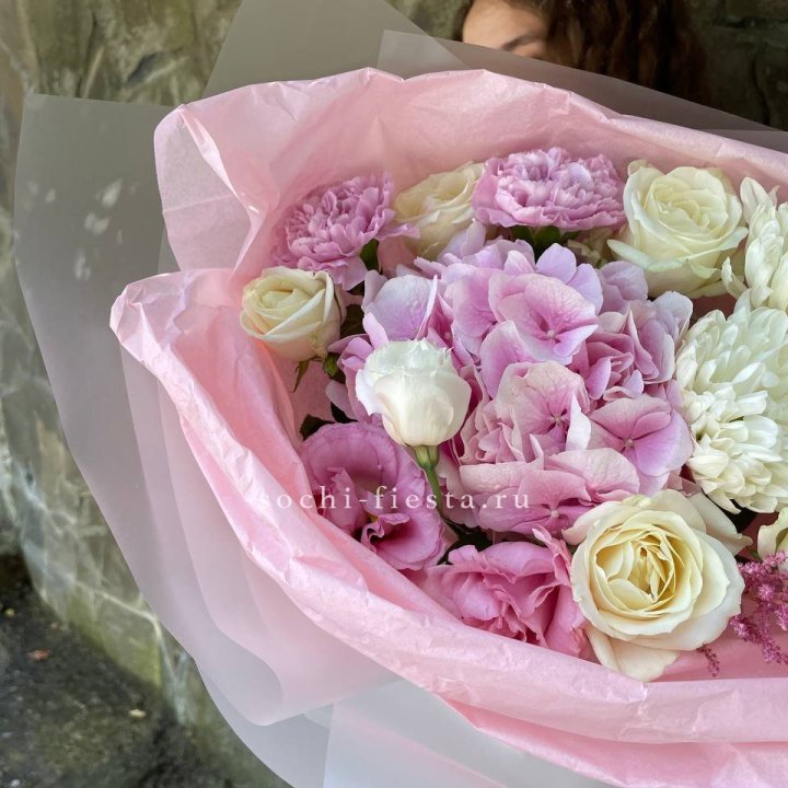 Букет гортензий и роз