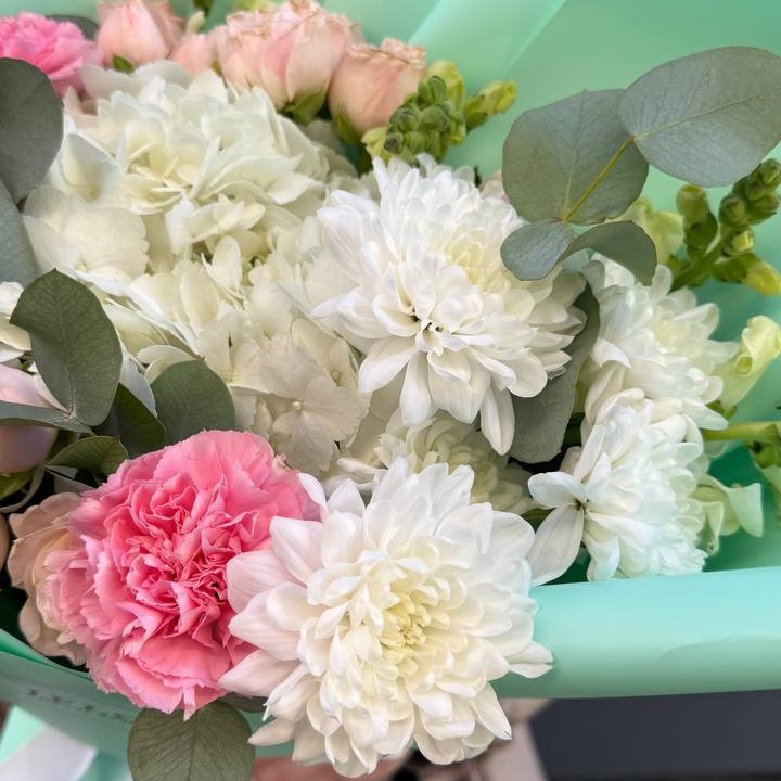 Букет хризантем и роз White snow