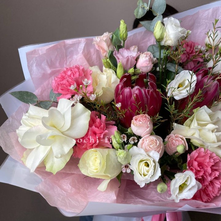 Букет с протеей, розами Элеонора