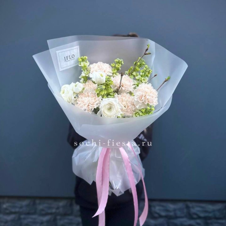 Букет маттиолы и ранункулюсов