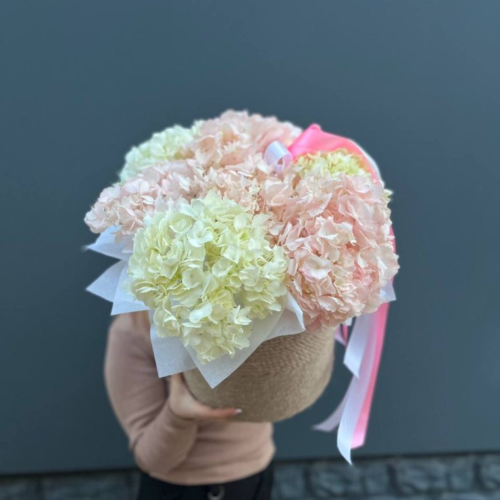 7 гортензий в корзине