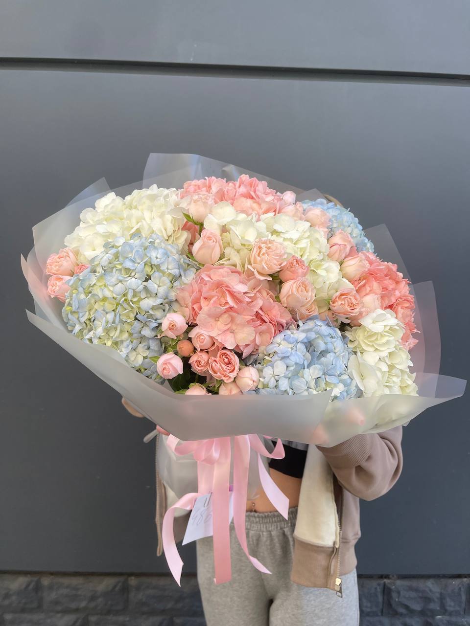Букет гортензии и кустовых роз "Abbraccio"