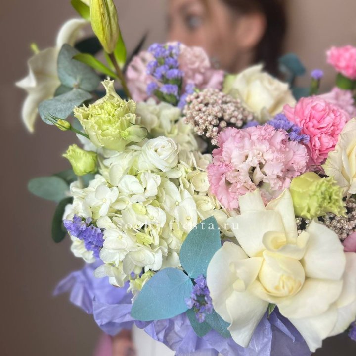 Бокс лилий и эустомы