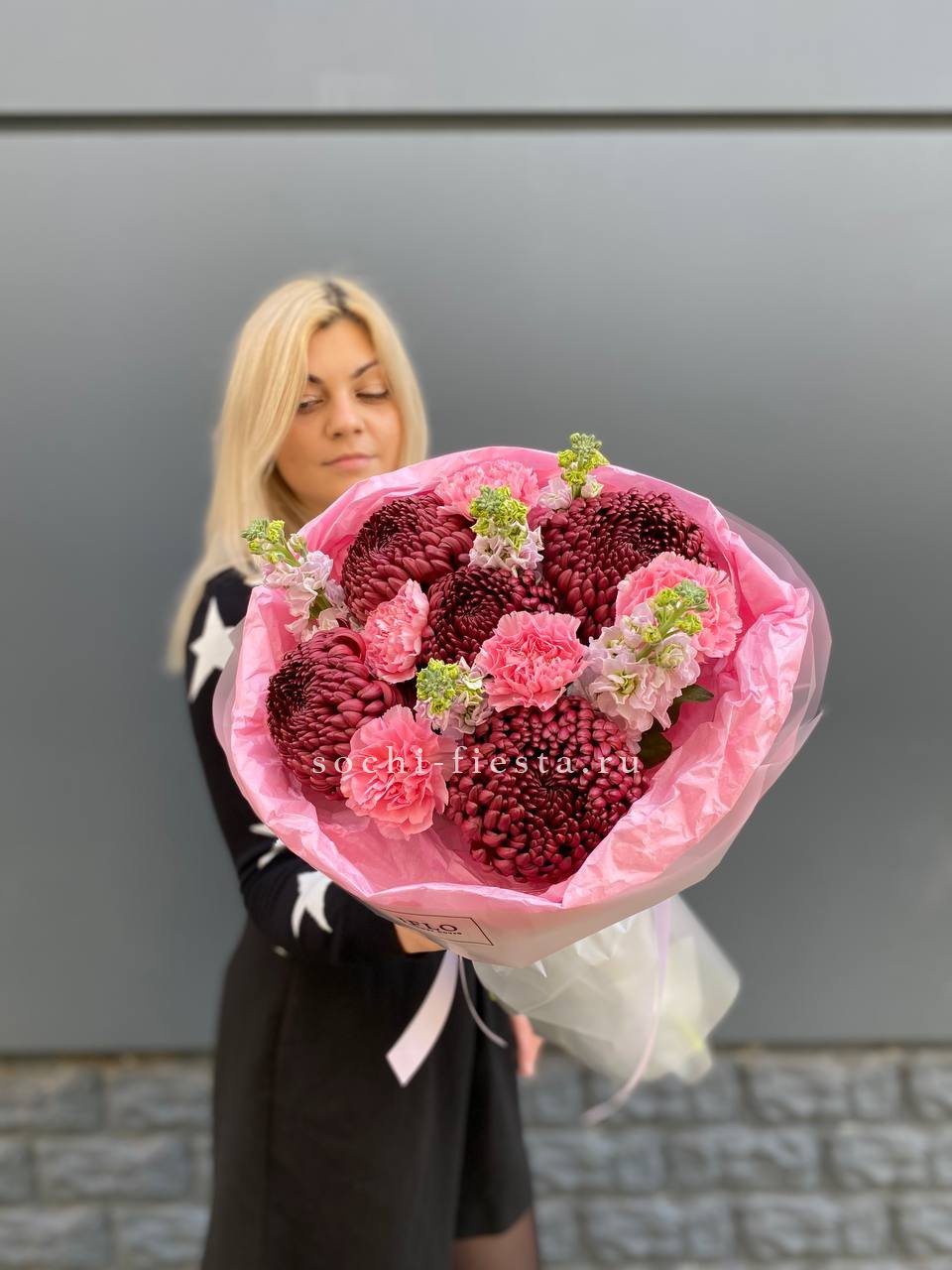 Состав: бигуди, диантусы, маттиола в нежном оформлении