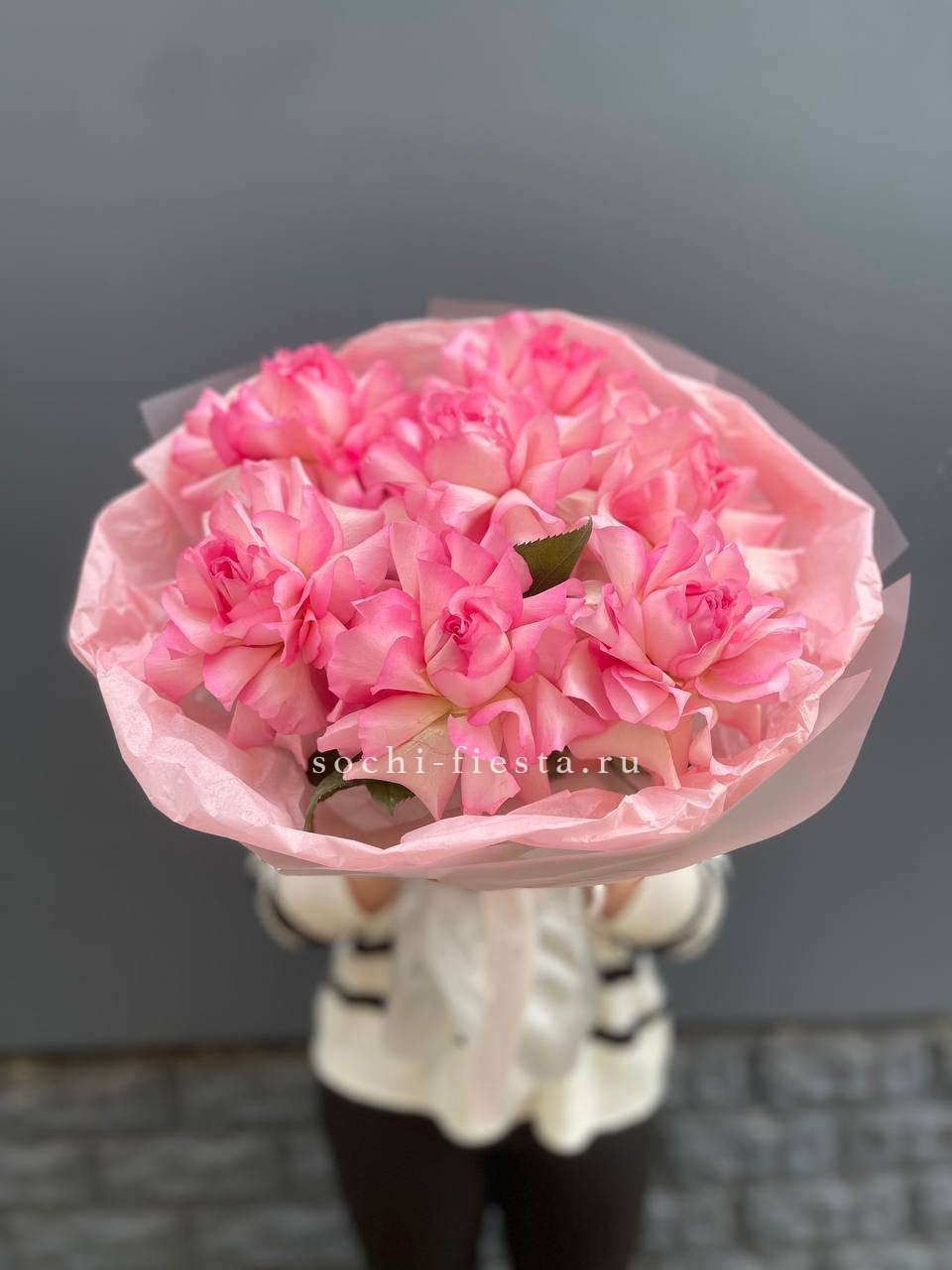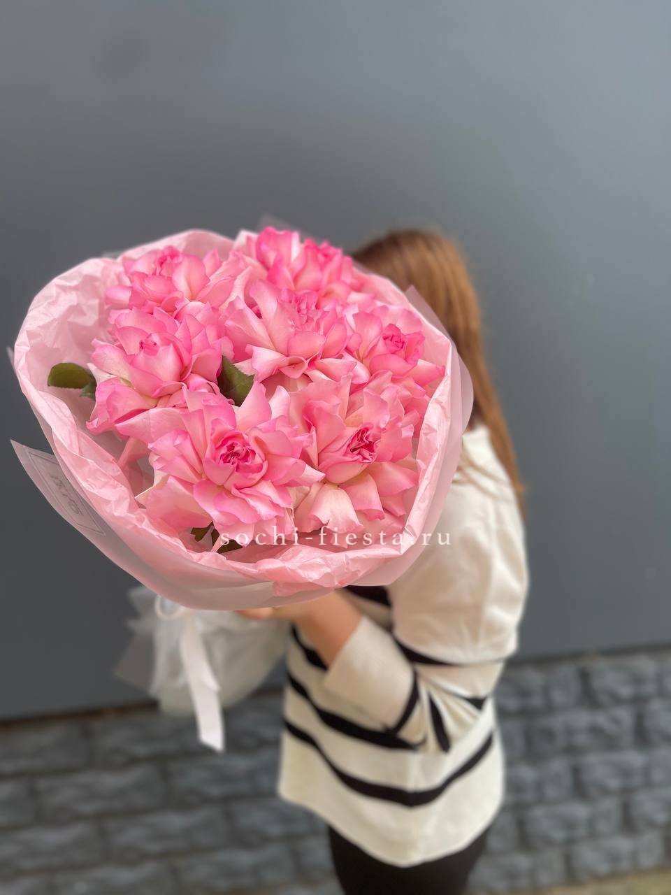 Состав: хризантема кустовая, розовые розы, перо, ковыль в оформлении