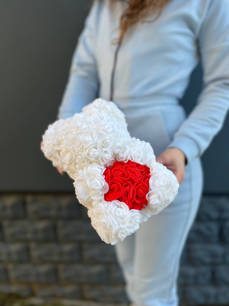 Медведь из PE материала фоамирана (цвет белый с красной сердцевиной)