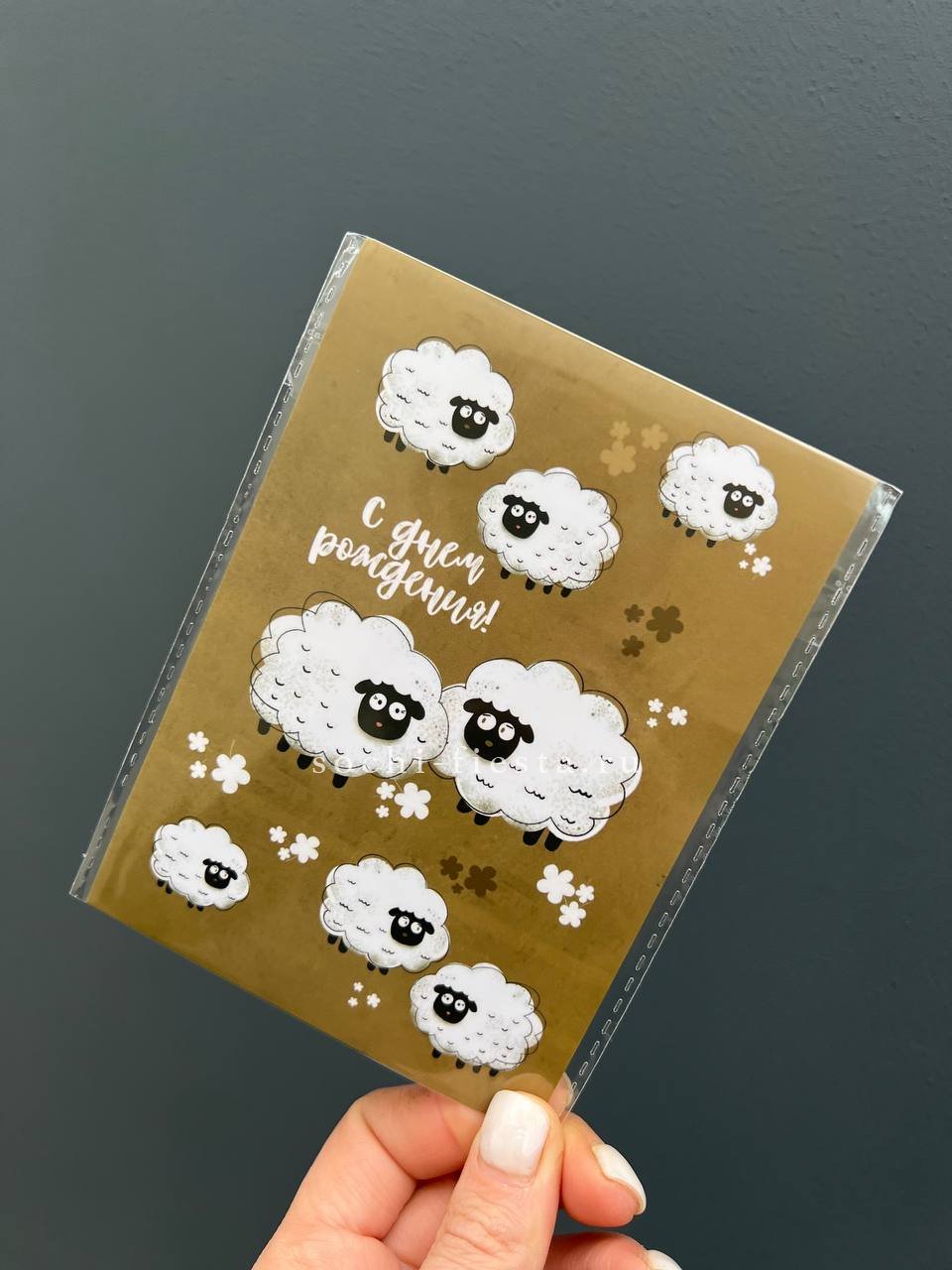 Открытка к букету "С днем рождения!” Овечки