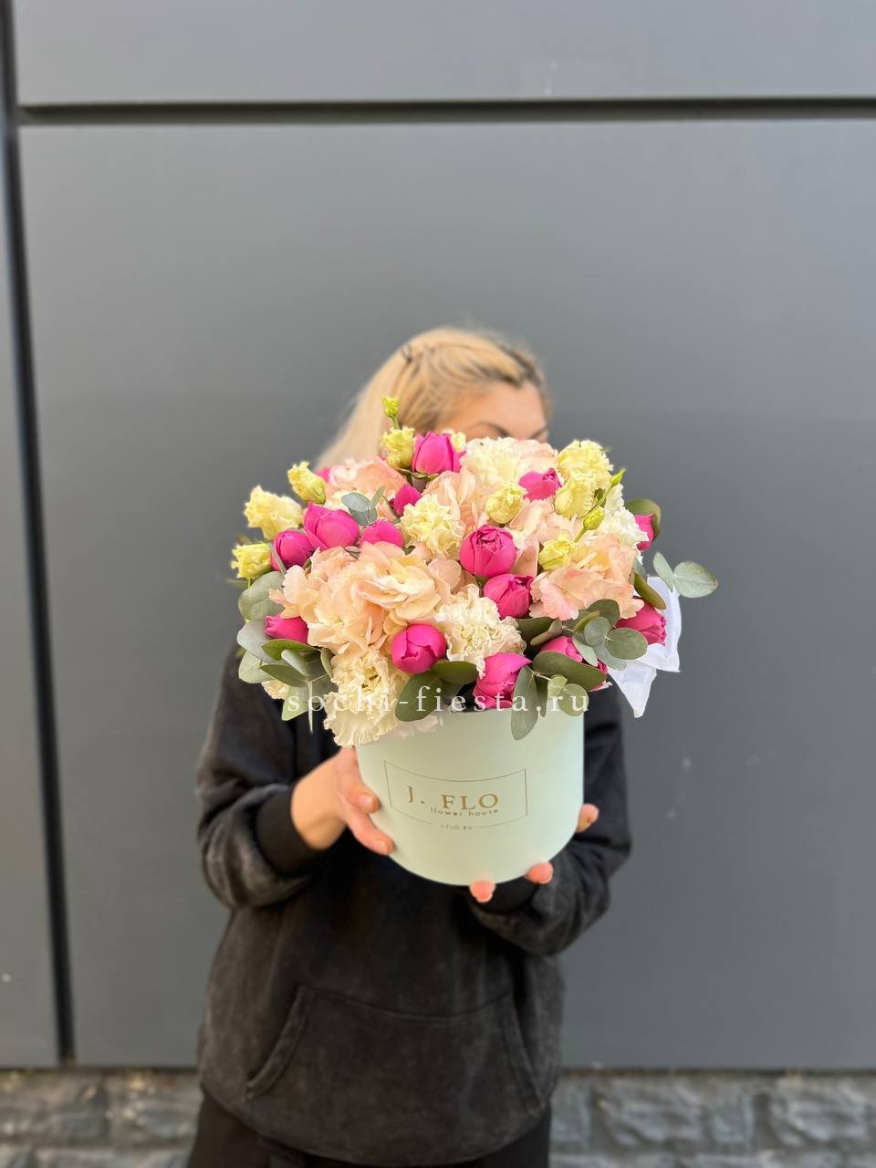 Состав: гортензия, пионовидные розы, эустома, эвкалипт, бокс 16