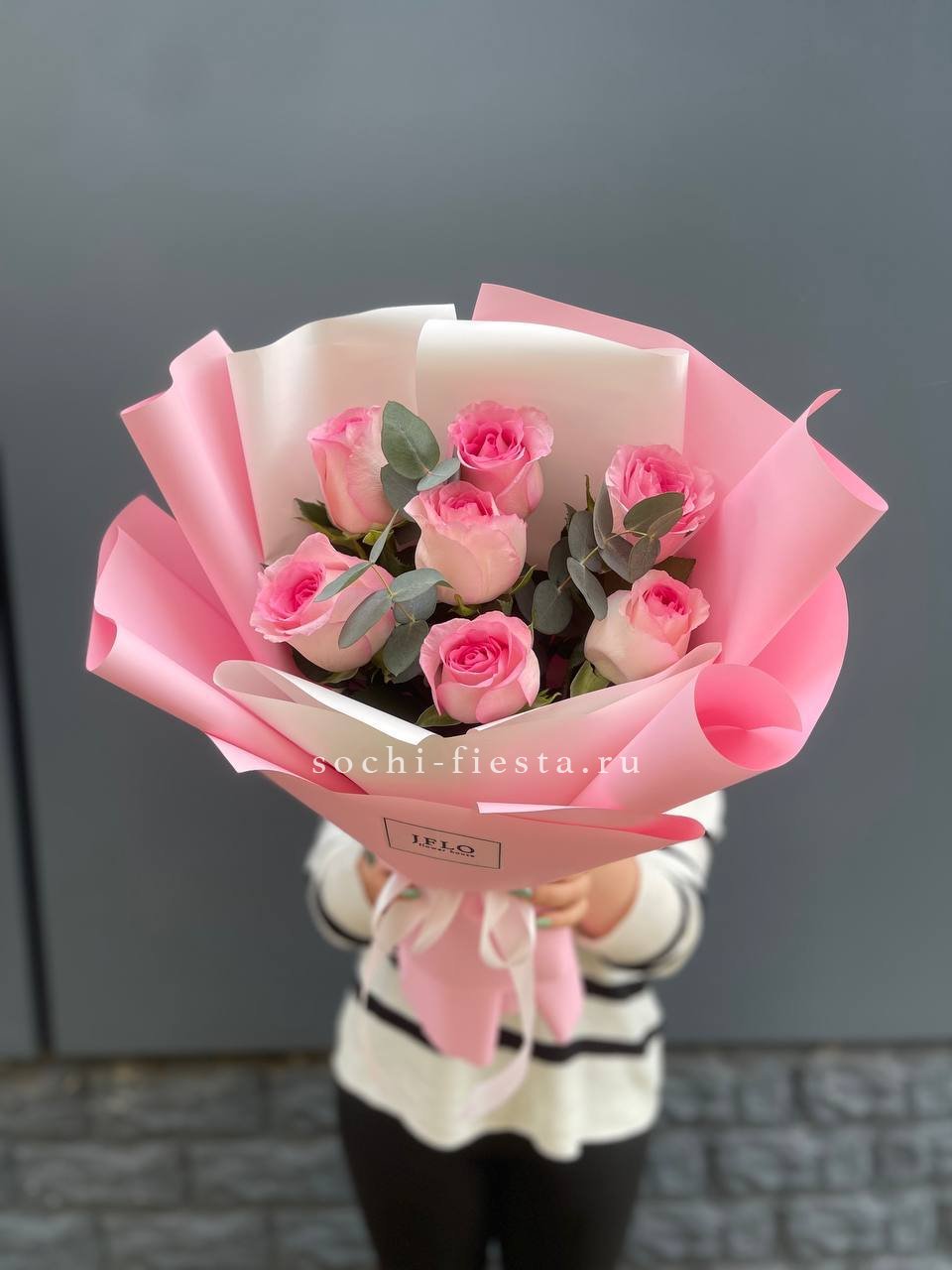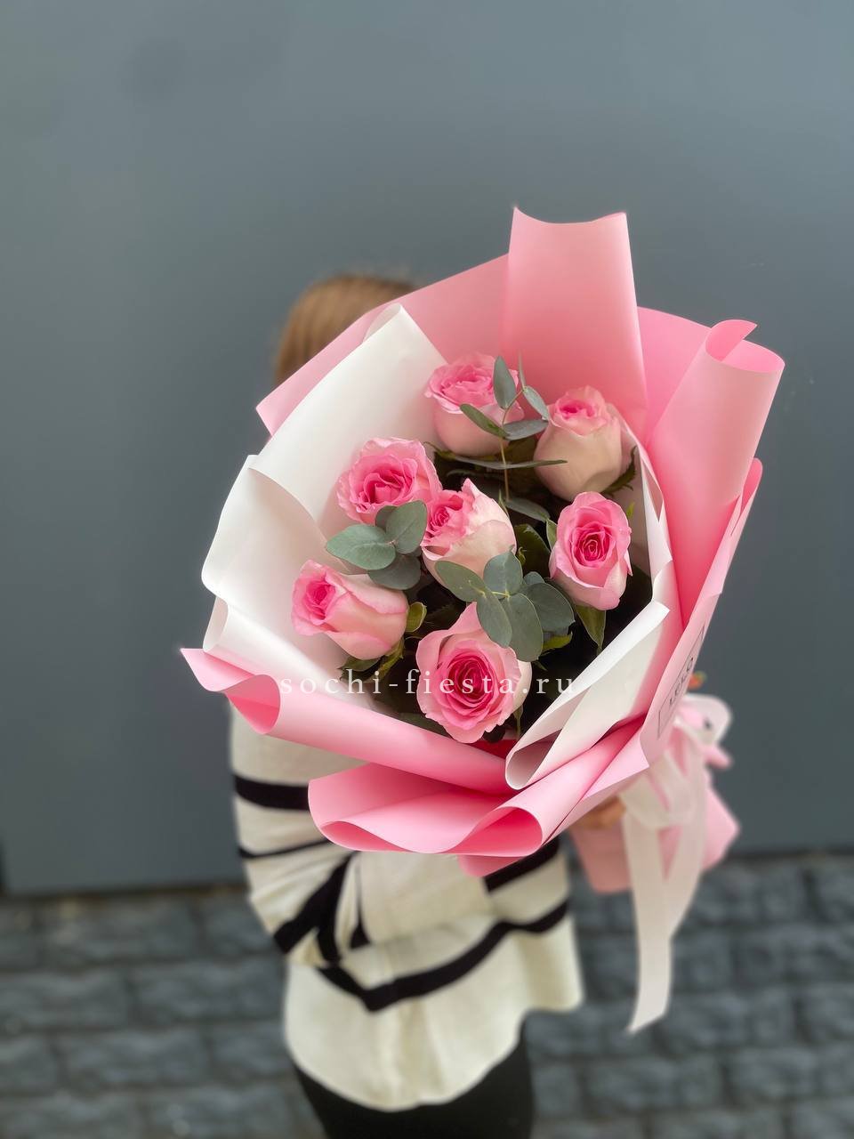 Состав: эустома, розы, пионовидные розы, озотамнус или аналог, диантусы, макаронс, декоративная зелень, коробка-сердце