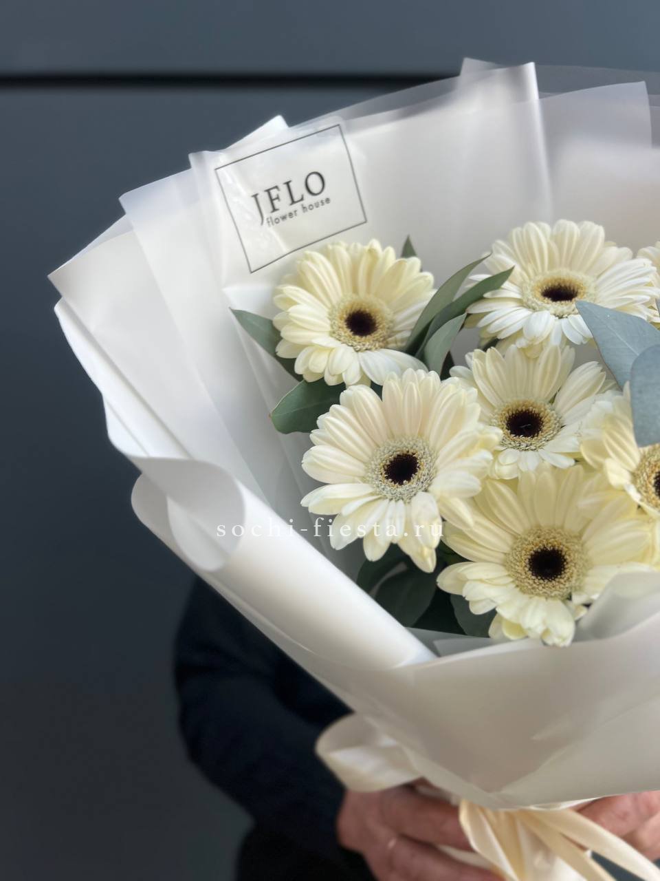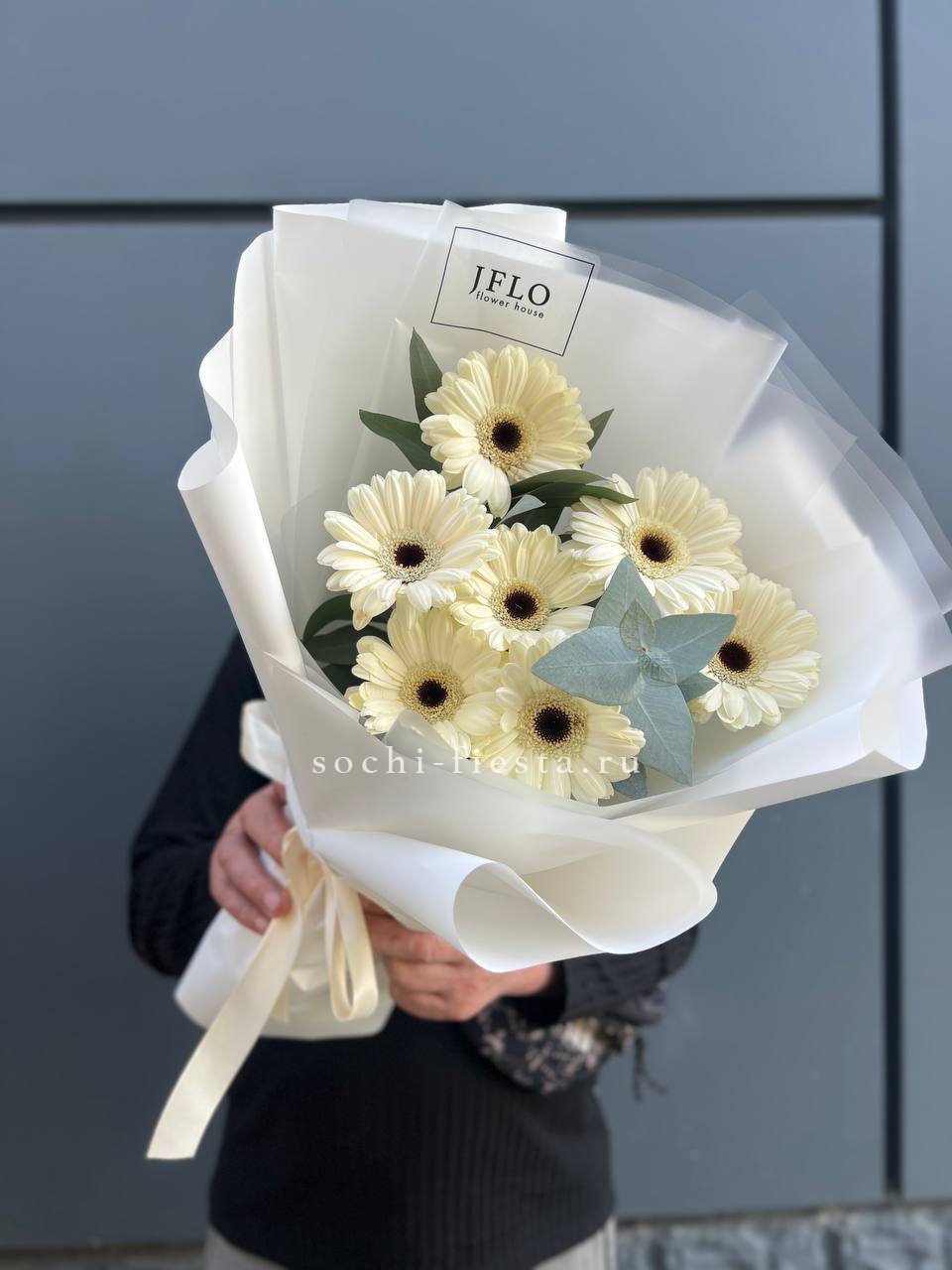 Состав: голландская гербера 7 шт., лента, дизайнерская упаковка