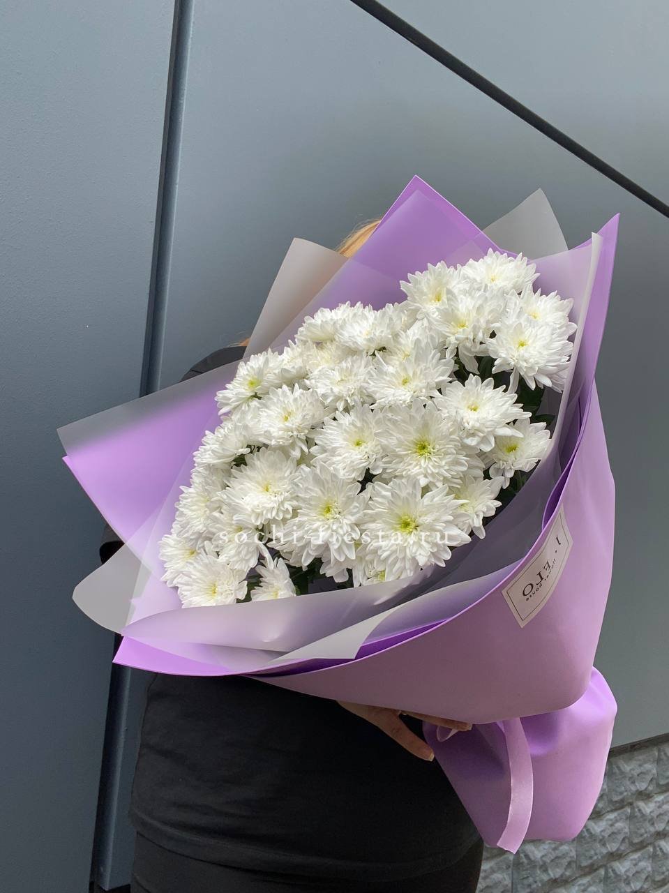 Состав: хризантема кустовая - 7 шт.,  лавандовый фоамиран,  лента