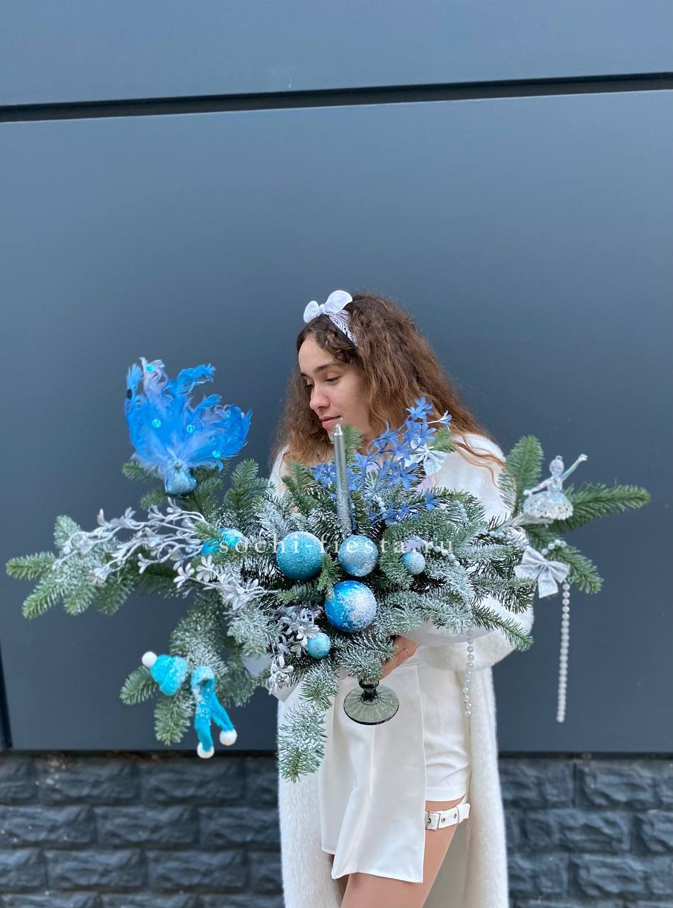 Состав: нобилис, бокал, оазис, свеча, новогодние игрушки, декор