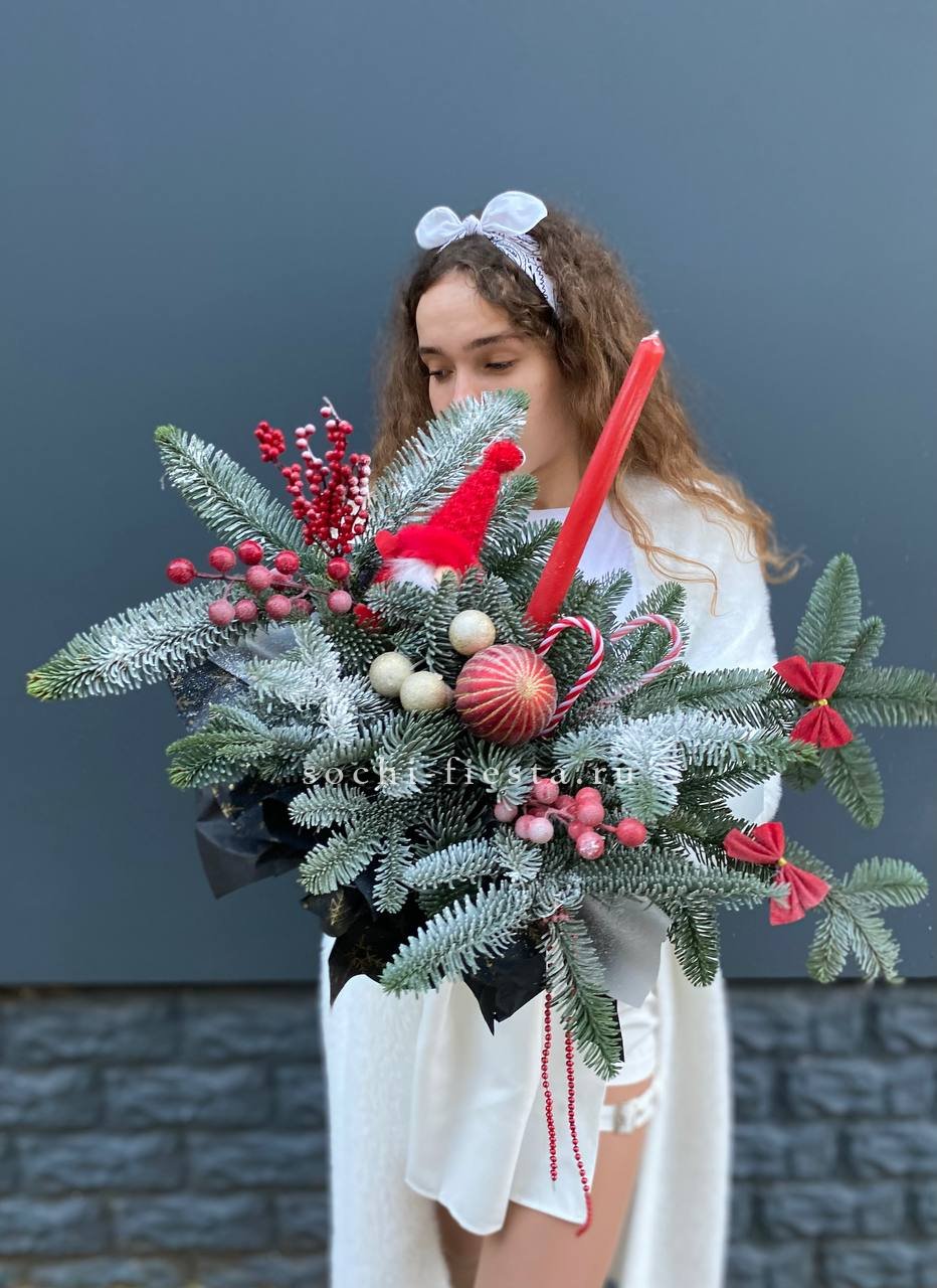Состав: нобилис, бокал, оазис, свечи, новогодние игрушки, декор