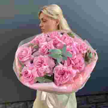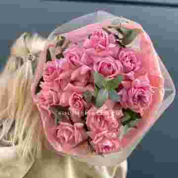 Состав букета на фотографии: вывернутые розы - 11 шт., эвкалипт-2шт, лента, авторская упаковка Для заказа товара нажмите в корзину