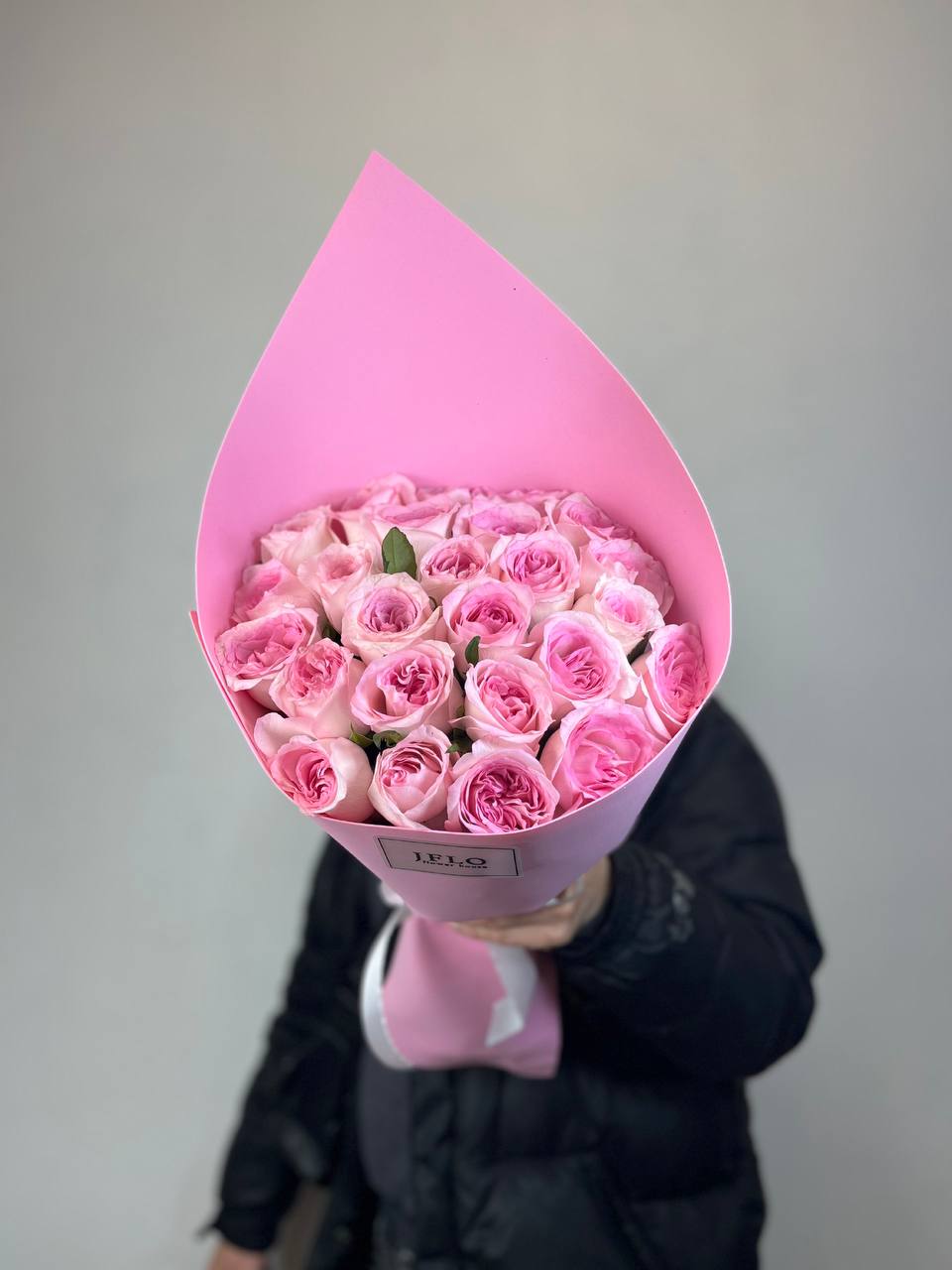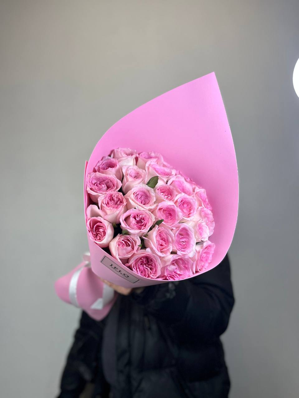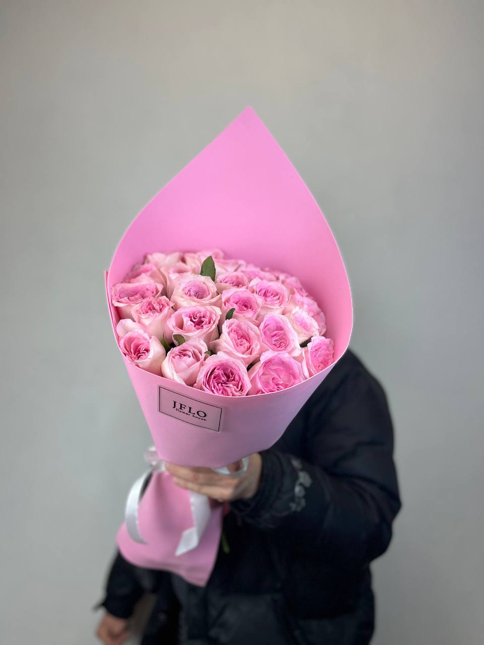 Двадцать пять бутонов с бархатистыми лепестками собраны в округлую форму, которая держит объём и создаёт мягкое розовое облако. Такой букет легко размещается в вазе и сохраняет свежесть долгое время.