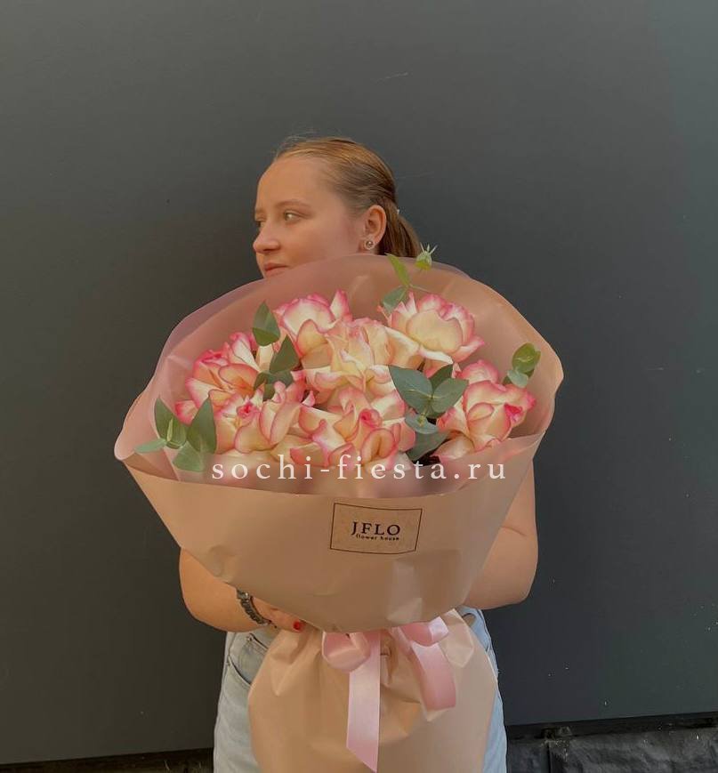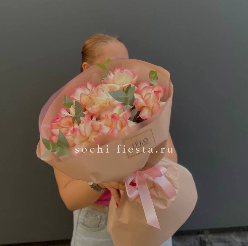 Состав букета на фотографии: вывернутые розы -7 шт., эвкалипт-1шт., лента, авторская упаковка