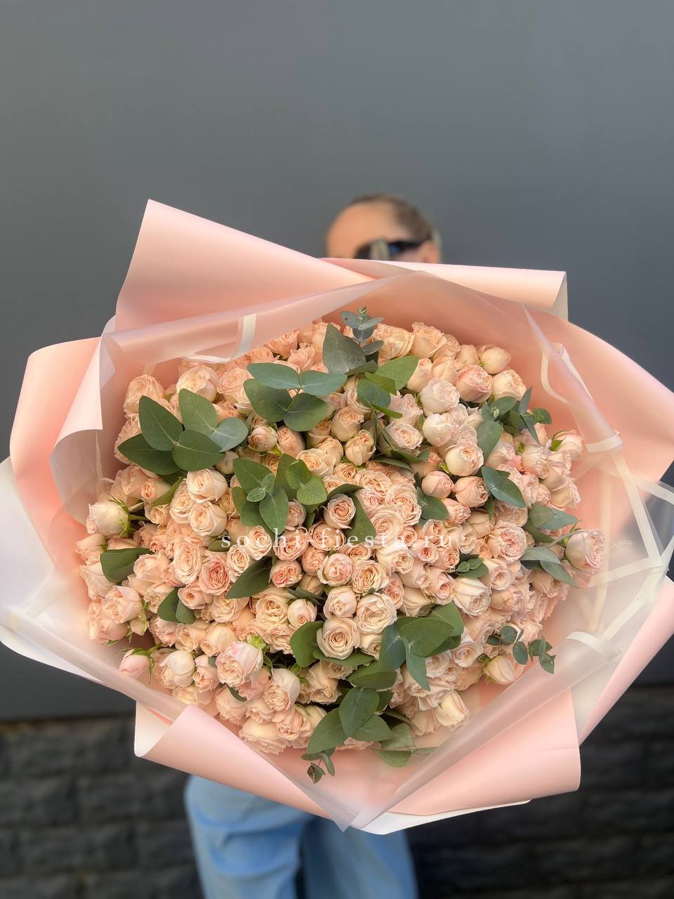 101 кустовая роза с эвкалиптом
