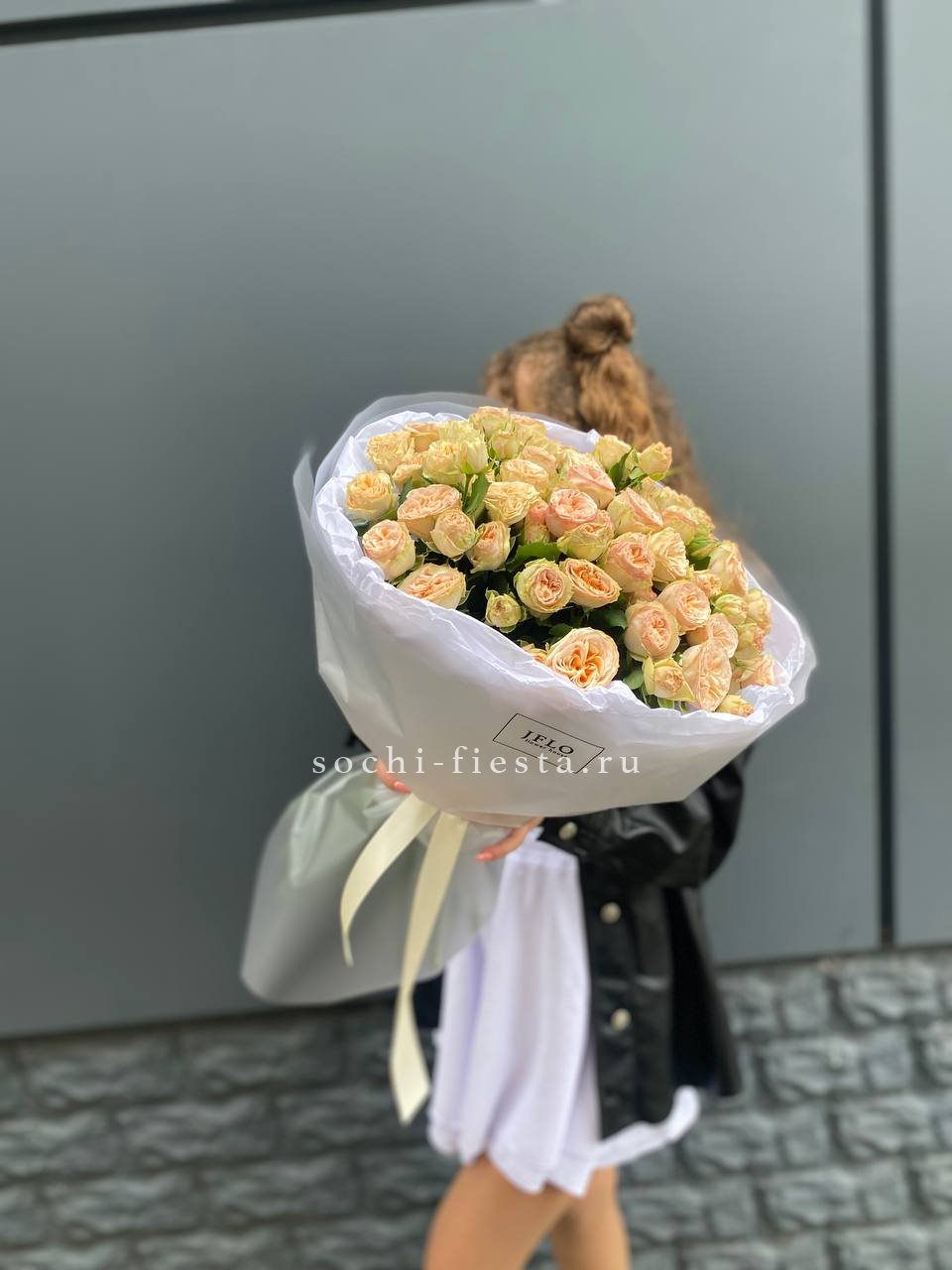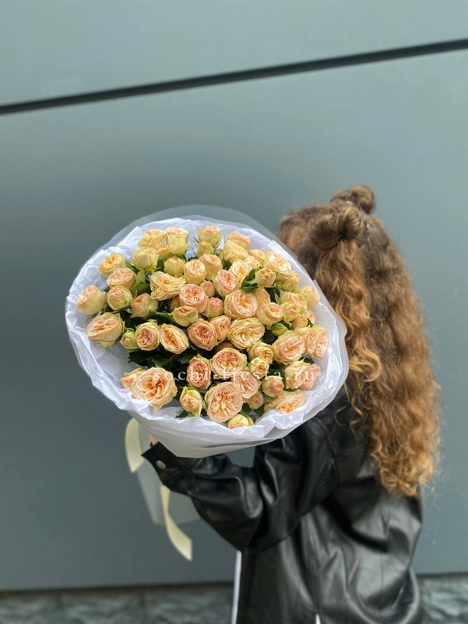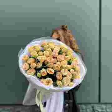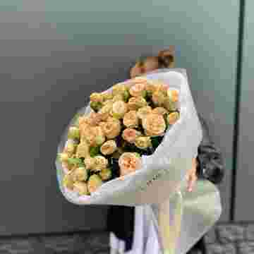 Состав: 15 кустовая пионовидная роза, лента, дизайнерская упаковка