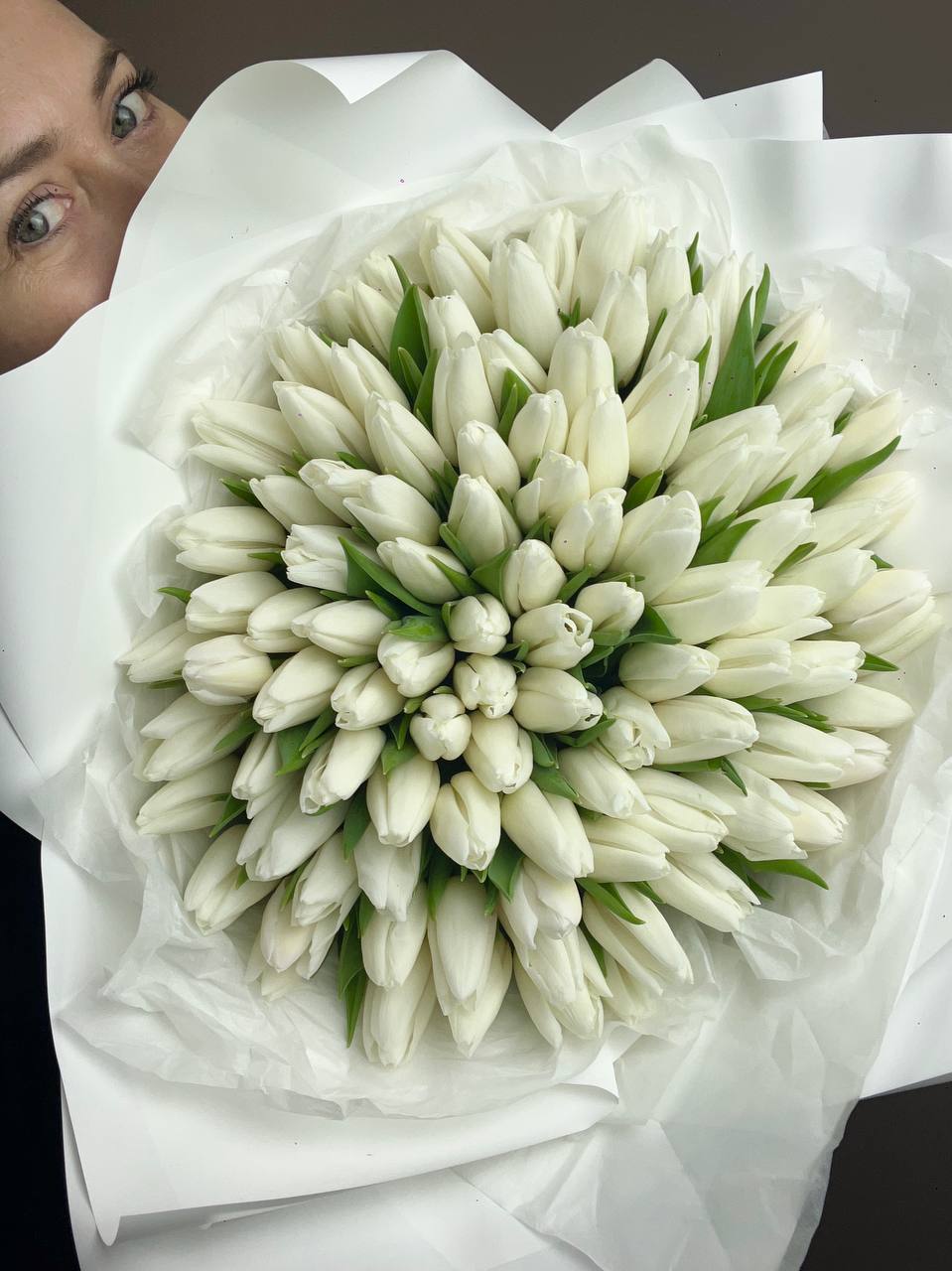 Для заказа товара "101 белый тюльпан №2" с доставкой в Сириусе нажмите в корзину
